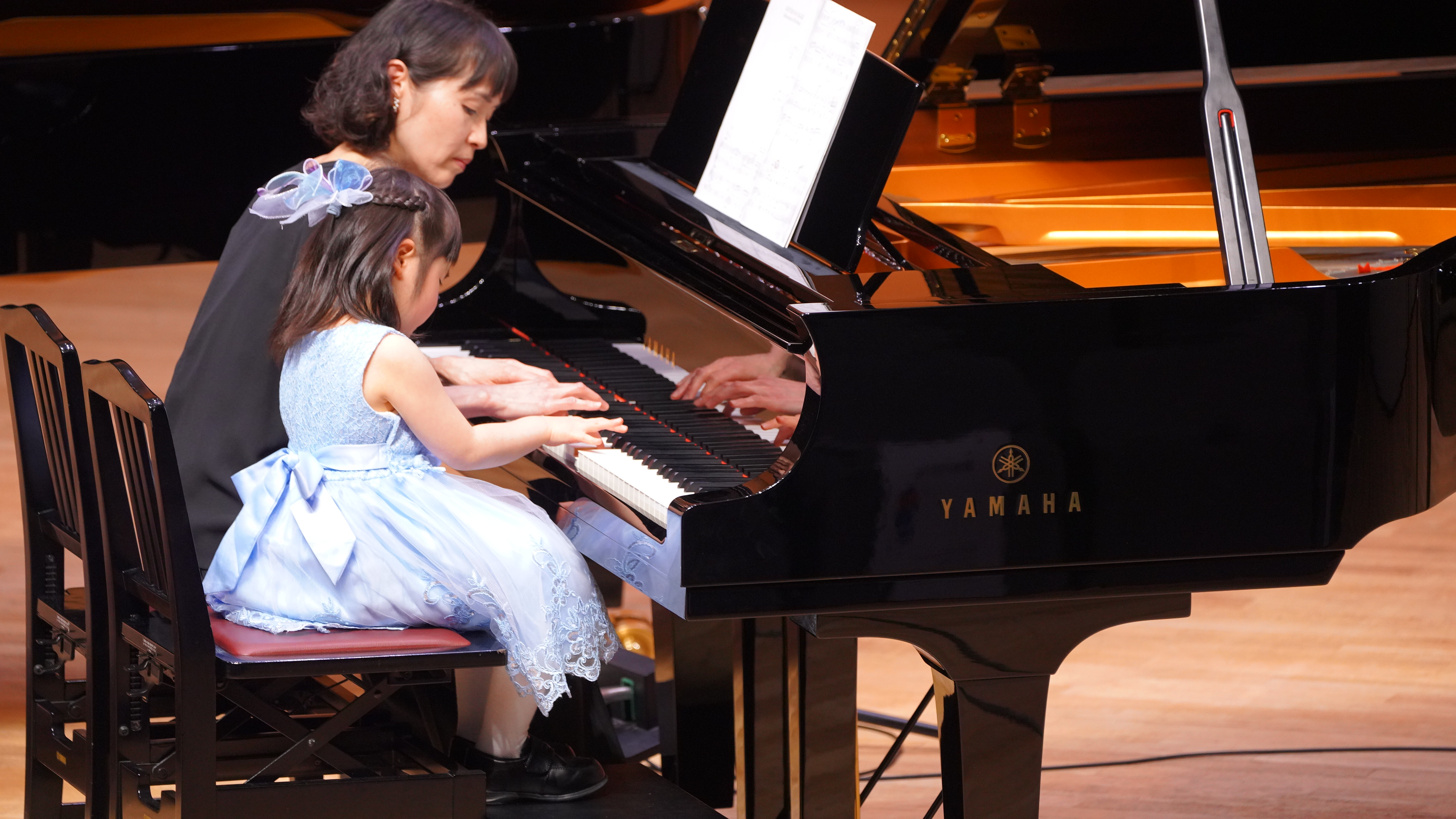 娘が年中になる時にピアノ教室を探していて、知実先生の教室にたどり着きました。 体験に伺い、グランドピアノが2台あるレッスン室の環境と先生のお人柄にひかれ、娘も「ここに通いたい!」と即断だったので、こちらにお世話になることに決めました。 知実先生は優しく、楽しくレッスンして下さるので、お陰様で娘はとても楽しく通っております。レッスン中は側で見学でき、動画で撮影もさせてもらえるので、自宅に帰ってからもその動画を見て練習することができます。先生は、まだ小さい娘にも音楽的なことを丁寧に教えて下さいます。 通い始めて1年ですが、娘は毎日練習をする習慣がつきました。自宅の練習では、うまくできずに悔し泣きすることもありますが、諦めずに取り組む姿を見ていると、ピアノの技術だけではなく大切なことを学ばせていただいていると感じます。 また、コンクールなどで舞台に立つ経験をさせていただき、娘は人前で演奏することが大好きになったようです。年に一度春にある発表会は大きなホールで行われ、ゲスト演奏などもあってとても素敵なので、本人も家族もとても楽しみにしています。前回の発表会では親子連弾をさせていただきました。母親の私はピアノに何十年というブランクがあったのですが、先生は私にもとても優しく教えてくださいました。親子連弾は、かけがえのない宝物のような体験となりました。
